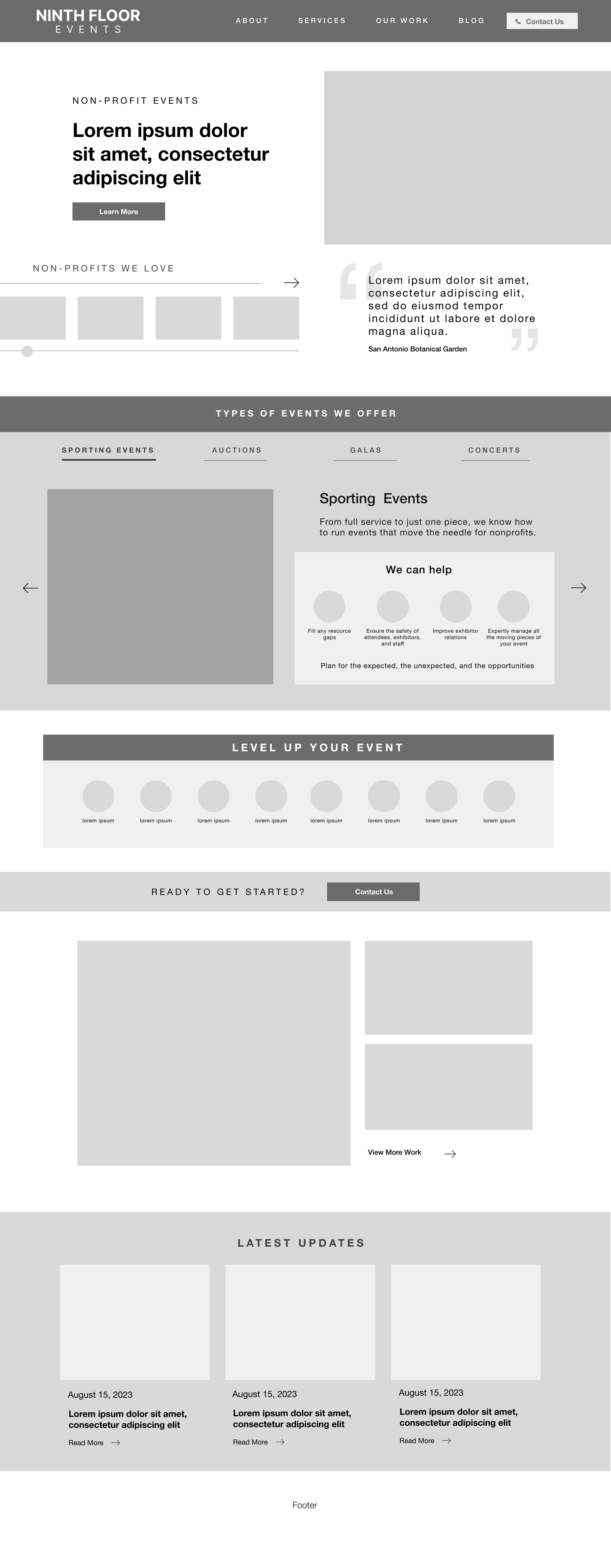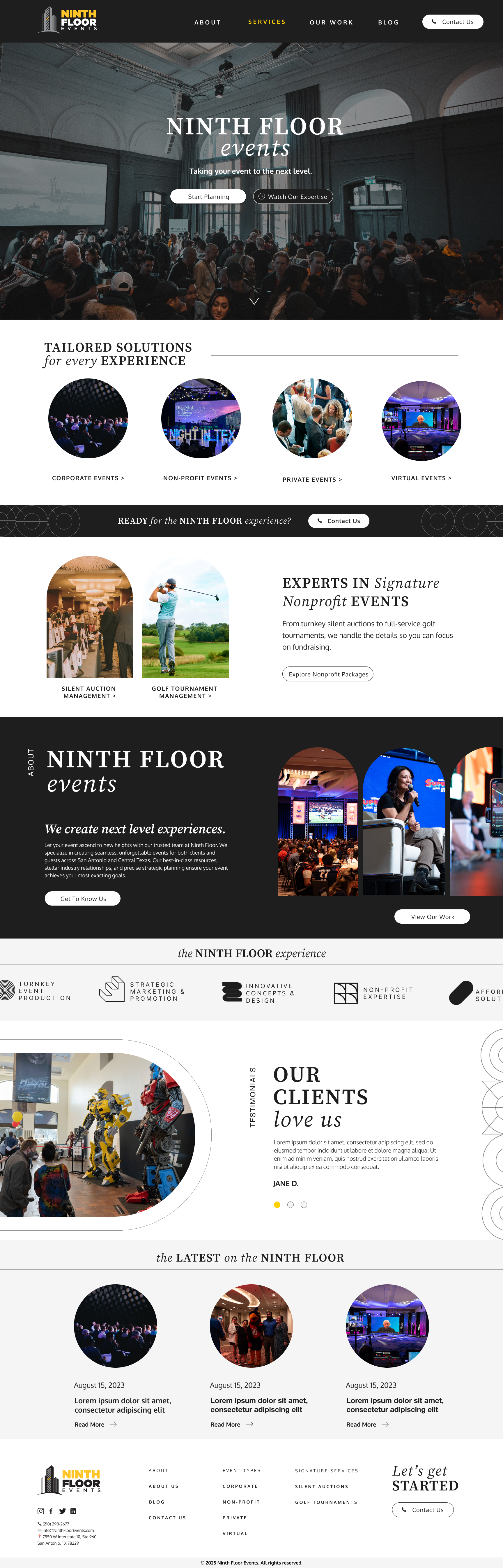 While working as a digital designer at Noisy Trumpet Communications, I had the opportunity to collaborate with Ninth Floor Events on shaping their brand from the ground up. The project focused on defining a distinctive visual identity that captured the energy, sophistication, and personality of their events. I played a key role in developing the branding and translating it into the overall look and feel of the live website, carefully considering typography, color, layout, and motion to create an engaging digital experience. By aligning design choices with the brand’s voice and audience, the final result was a cohesive and immersive online presence that reflected Ninth Floor Events’ creative vision and elevated how they connected with their clients.