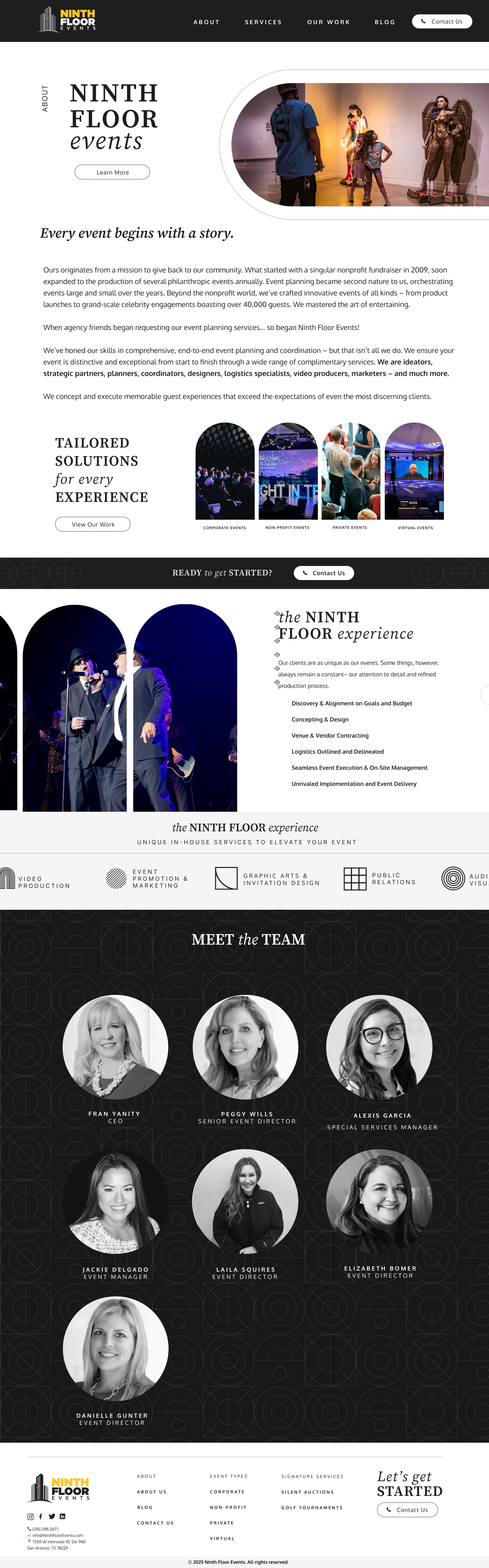 Ninth Floor Events is a full-service event planning company specializing in the creation of seamless, unforgettable experiences for both clients and guests throughout San Antonio and Central Texas. From intimate gatherings to large-scale corporate and social events, Ninth Floor approaches every project with creativity, precision, and a deep understanding of each client’s vision.